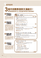 3. 閱讀測驗應考策略→熟讀本書各單字相關例句,熟悉單字的應用方式以提升句意分析能力。