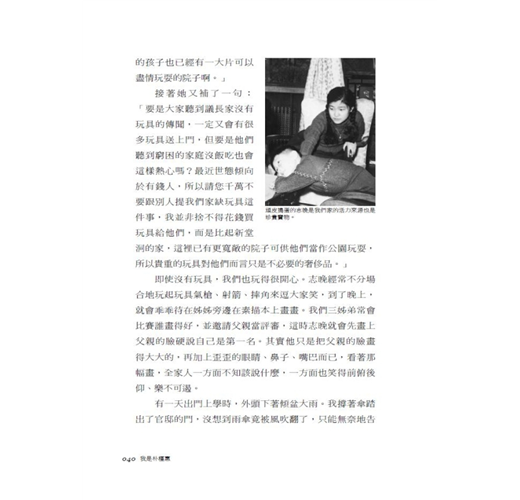 青瓦臺,庭院寬廣的家 / 國防褲的回憶 / 從巷口老大到青春期少女 / 父親是浪漫詩人 /