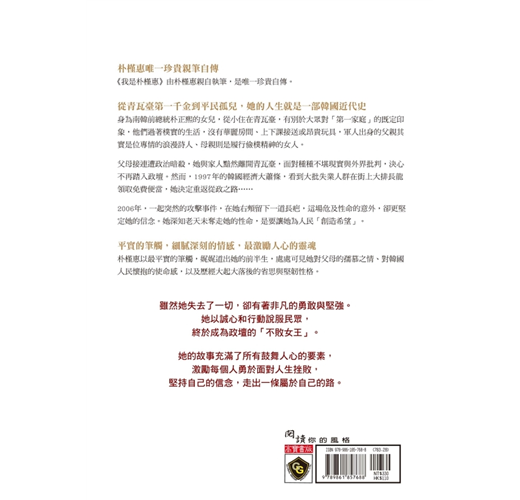 朴槿惠以最平實的筆觸,娓娓道出她的前半生,處處可見她對父母的孺慕之情、對韓國人民