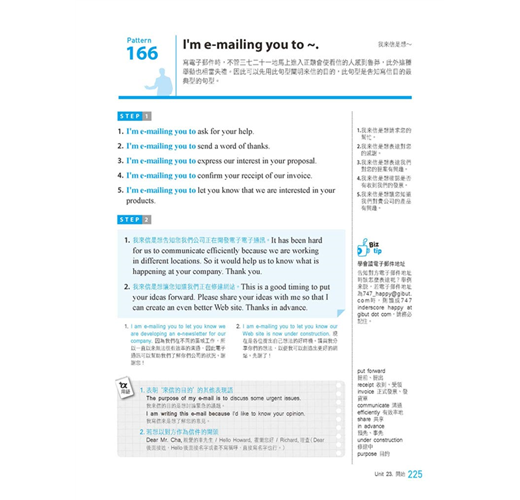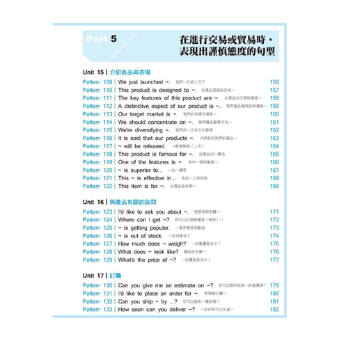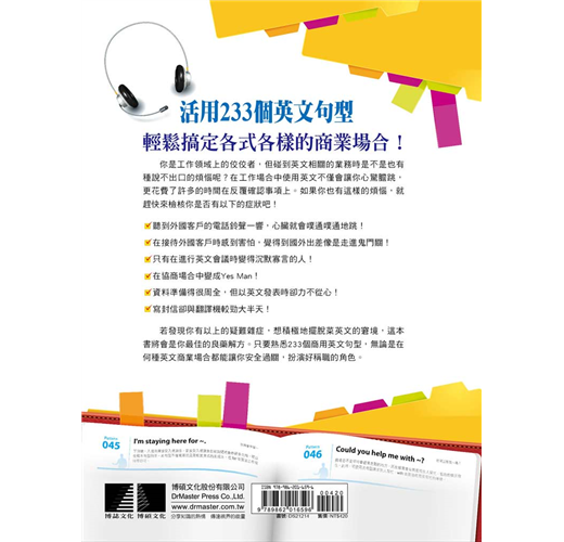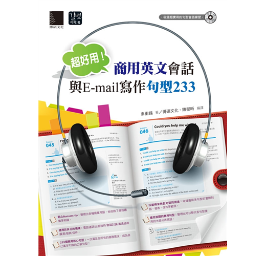 若發現你有以上的疑難雜症,想積極地擺脫菜英文的窘境,這本書將會是你最佳的良藥解方。只要熟悉233個商用英文句型,無論是在何種英文商業場合都能讓你安全過關,輕鬆扮演好稱職的角色。