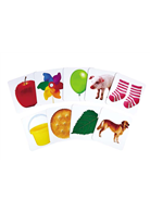 收錄生活中常見的不同種類圖案,搭配外盒標識中英文品名,讓幼兒從反覆的觀看與吟詠中認識物品,並加深孩子的印象。