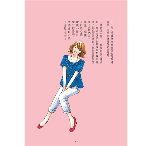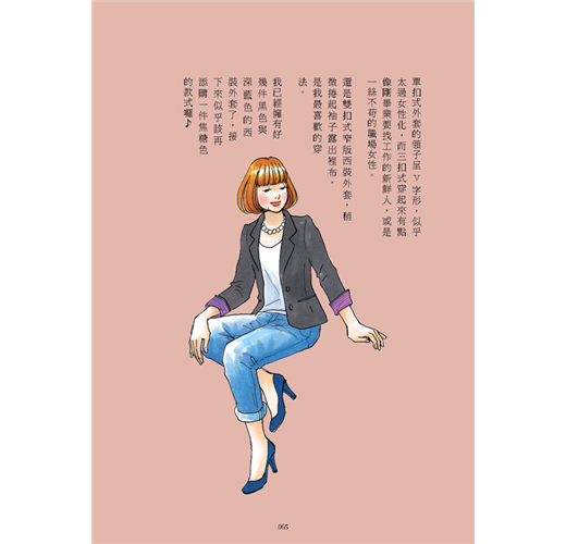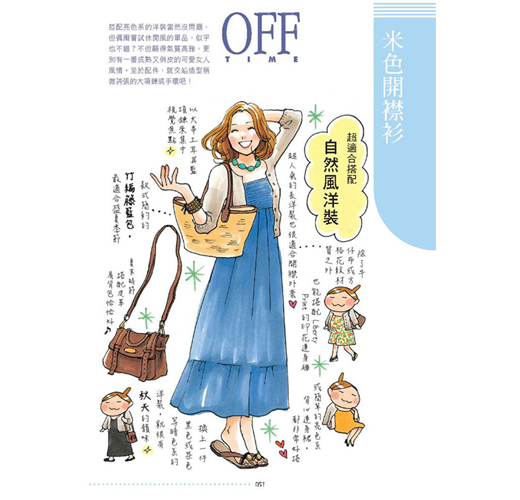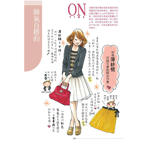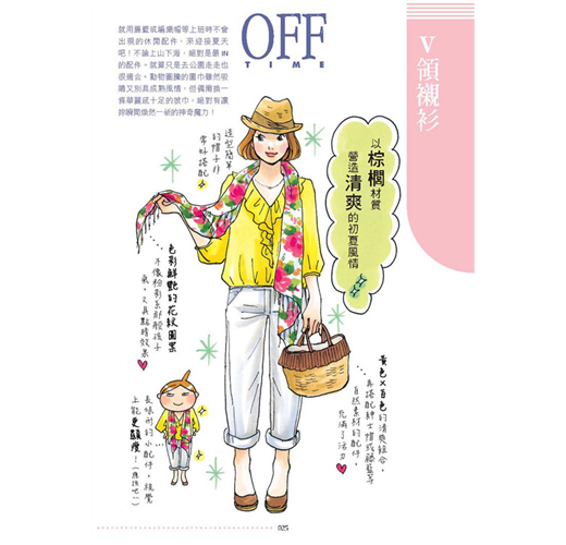 在脫離OL生活後,轉職為自由插畫家,作品活躍於《MORE》《美人百花》等時尚日雜。秉持著認真工作、認真血拼的精神,歷經無數次的失敗經驗後,歷經無數次的失敗經驗後,深切領悟到,「時尚」在一般粉領族身上,更能展現出獨具風格的洒落潮流。