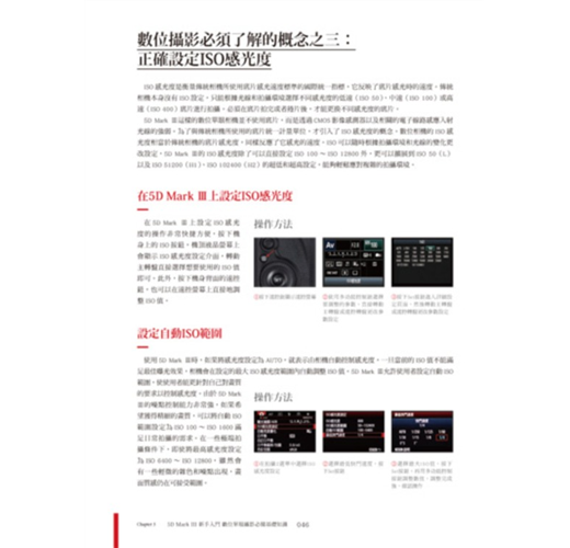本書除了介紹Canon 5D Mark III的新增特性,以sstep by step的方式詳細解說各項功能與應用之外,更貼心的將光圈、快門、ISO感光度的選擇與運用,外加曝光控制、白平衡選擇、必備配件選擇、多重曝光、HDR合成等知識與5D Mark III緊密結合,即便是剛剛開始接觸數位單眼相機的新手,在看了這本書之後也能夠在短時間內輕鬆上手。