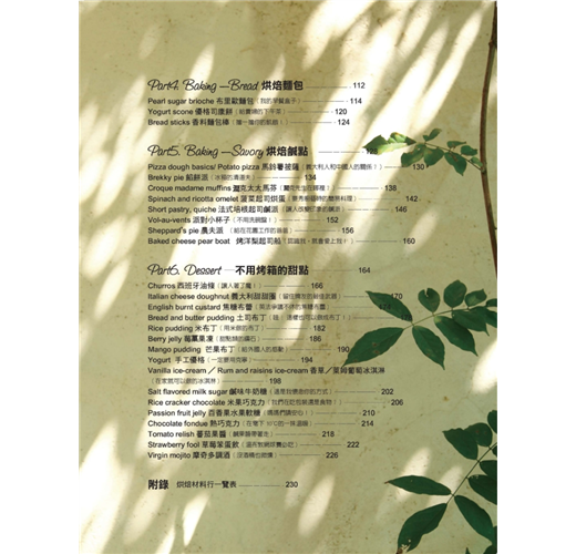 ◆ 以田園的視覺呈現,以花園裡的香草入菜,閱讀此書即能感受悠閒的居家烘焙生活情趣。