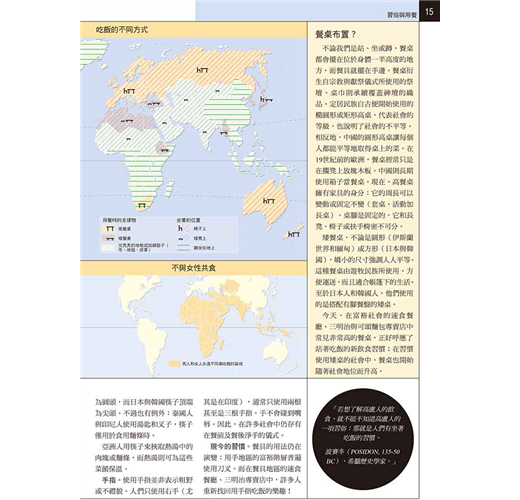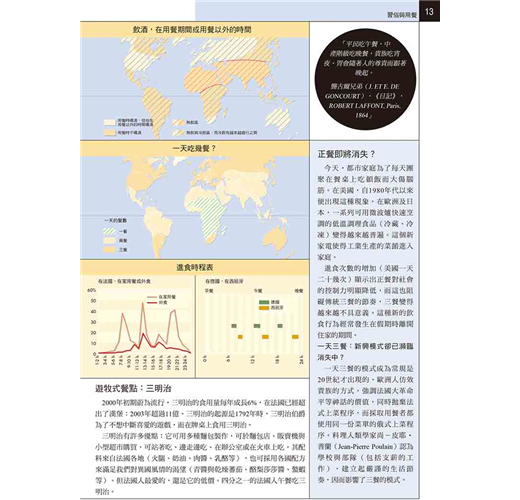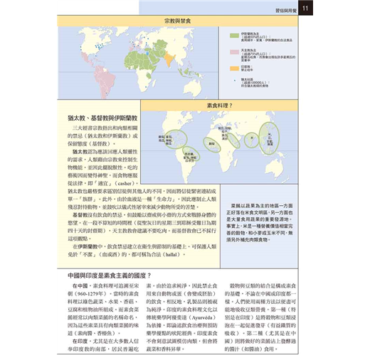 本書每一主題以簡要文字說明,穿插大量明確易懂的地圖、數據圖及圖表配合解釋主題內容,並挑選相關名人名言引人省思。以簡短的篇幅,闡述飲食知識的精要內容。