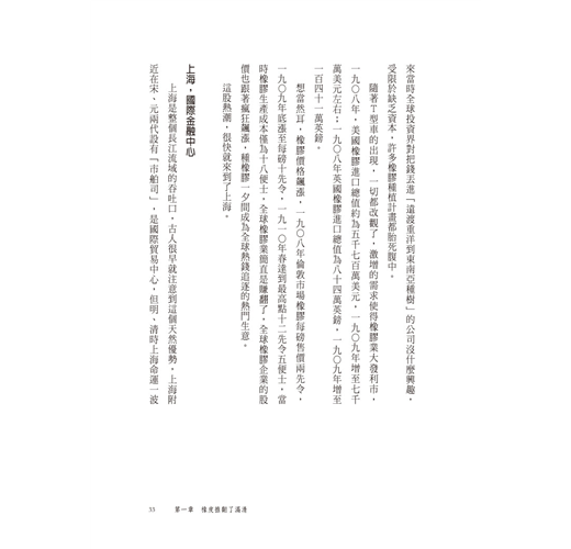 一切都要從太平洋另一端的美國說起,1908年,亨利‧福特推出T型車,風靡一時,頓時全美國都在瘋「燒胎」,輪胎需求量一夕暴增,製造輪胎的原料橡膠價格也跟著三級跳,全球橡膠股價飆漲,國際一流商業城市上海也不例外;