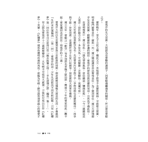 曹雪芹,名霑,字夢阮,號雪芹、芹圃、芹溪。根據胡適說法,雪芹大約生於康熙五十二年(一七一五),約卒於乾隆二十七年(一七六二)除夕,不到五十歲。