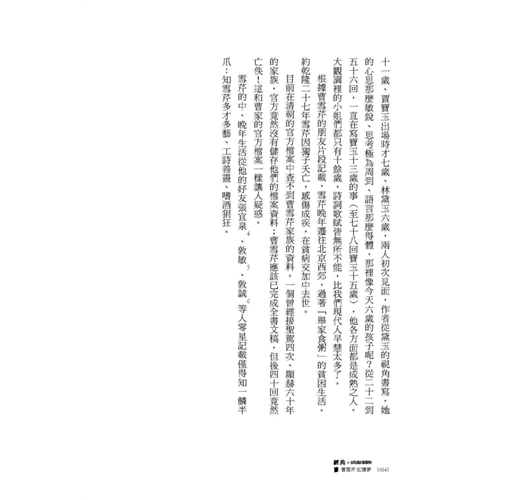 有人認為曹雪芹十三歲經歷變故,太年輕不可能有大感發,日後如何寫出巨作《紅樓夢》?其實,《紅樓夢》裡那些聰明伶俐的角色,都極為年輕;齡官談那刻骨銘心的戀愛才十一歲、賈寶玉出場時才七歲、林黛玉六歲,兩人初次見面,作者從黛玉的視角書寫,她的心思那麼敏銳、思考極為周到、語言那麼得體,那裡像今天六歲的孩子呢?從二十二到五十六回,一直在寫寶玉十三歲的事(至七十八回寶玉十五歲),他各方面都是成熟之人。大觀園裡的小姐們都只有十餘歲,詩詞歌賦皆無所不能,比我們現代人早慧太多了。