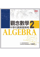 《觀念數學2:中學代數解題策略》就是以此為目的,一方面介紹簡單的解題策略,另一方面引導學生以標準的思考去解題。書裡大量採用學測與指考的試題,讓讀者體驗出,只用簡單的解題策略與思考,就足以應付大考的題目,進而解出沒見過的題目。