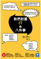 「我們討厭IT的八件事情」這本書是作者在職場工作多年後,針對IT價值創造和IT導入等兩個重要議題,將工作心得寫下來具實用參考價值的一本書,也是自2003年Mr. Carr所寫的「IT對企業沒有幫助」文章以來,本人所看過對此議題探討深入且具實務價值的一本書。