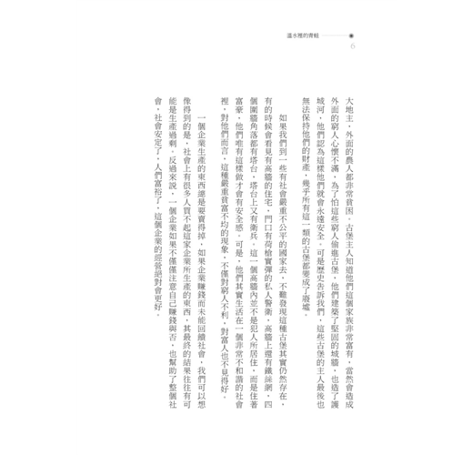 我們每一個人都要注意到公共利益,也就是說,我們要使更多的人能夠生活得比較好,唯有如此,我們自己也可以有較好的成就。所以,過去很久以前那種資本主義社會早就不存在了。不存在的理由並非完全基於道德上或者良心上的覺醒,而是因為大家終於知道,我們一定要有一個好的社會,在這個好的社會裡,所有的人都能夠有好的生活,唯有如此,企業才能發展。近年來,社會福利政策也是基於這種想法而發展出來的。
