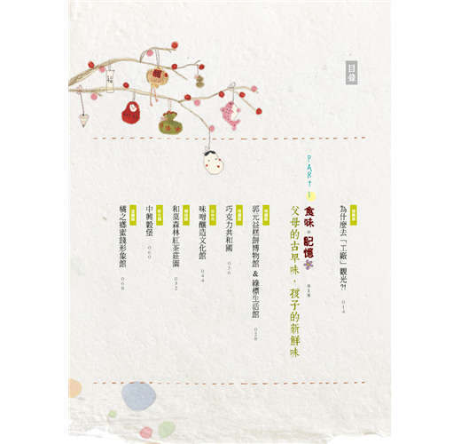 1. 與坊間介紹觀光工廠主題有所區隔:強調親子互動、文化傳承、吸收多元知識、邊玩邊學、珍藏回憶,是一本「親子旅行+教養」書。