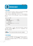 除第一章外,其餘章節皆配合內文主題重點,以數個簡易的範例來示範如何將物件導向的概念,落實到實際的系統開發上。