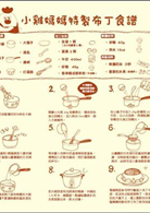 書後附有雞媽媽特製布丁食譜,讓大人帶著孩子一起動手做,創造屬於自己的幸福布丁!