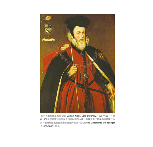 年屆七十八歲的伯利男爵,白髮蒼蒼、巍巍顫顫,卻仍不得不扛起治國的重責大任,因為女王過去半世紀以來都相當仰賴他,儘管知道他已近乎全聾、為痛風所苦,就連拿筆都有困難,仍完全無法同意他辭職一事。…伯利男爵是女王年輕時執政集團中僅存的最後一員,其他人都已經死了。若沒有了他,女王知道自己將被其它新崛起的年輕勢力孤立,這些年輕人多數都討厭她、視她為強弩之末。