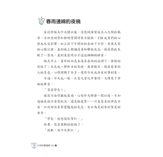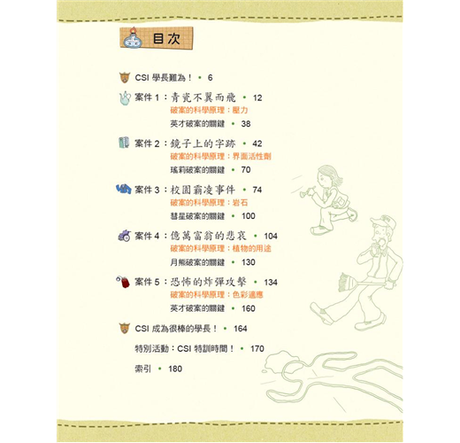 跟著「少年科學偵探隊」一起仔細觀察犯罪現場,運用物理、化學、生物、天文等科學知識,讓罪犯無所遁形。