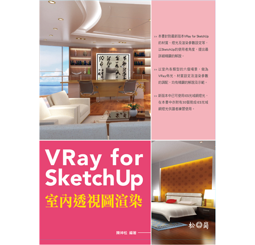 本書針對最新版本VRay for SketchUp的材質、燈光及渲染參數設定等,以SketchUp的使用者角度,提出最詳細精闢的解說。
