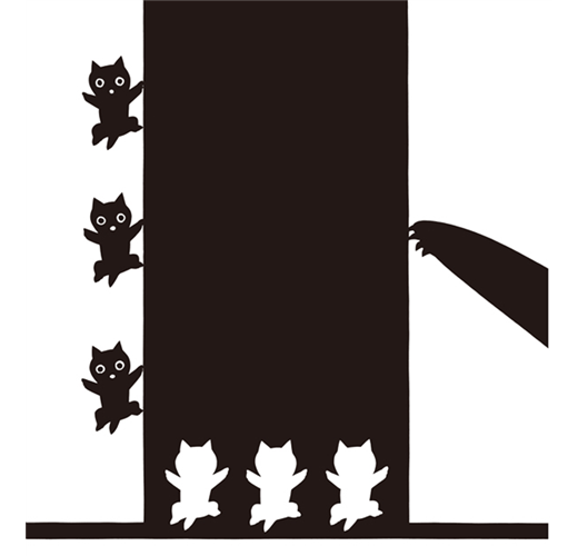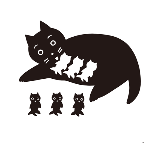 在畫面上,黑與白的對比加上單純的造型,讓黑貓媽媽、三隻小白貓及小黑貓都讓人留下深刻印象。畫面上黑白的對比同時也營造出剪紙畫般陰陽相襯的效果。有趣的是,當你仔細觀察畫面,就會發現小白貓都是從黑貓媽媽身上剪開,被白底襯出來的,而剪下來的小黑紙片就變成了小黑貓。