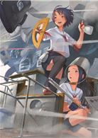 日本職業插畫家,Pixiv人氣非常高的畫家。常見到學生出現在畫作中,讓作品呈現出年青活力的感覺。