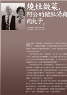 阿公喜歡看我吃,也常笑著說我「真厚吃,擱未大摳」。 我也愛膩在阿公身邊陪他做菜,陪他開講(槓),陪他在飯桌上翹著腿、喝著竹葉青,聽他說我愛聽的三國志、臭頭皇帝,這些鄉野傳奇是我童年相當重要的一部分,也深深影響著我,有時我想,我的愛吃、四處吃,以吃說故事、做節目,和小時候與阿公在一起的時光,其實也沒什麼不一樣。