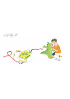 這樣「有收、有放」的模式,讓孩子的逸出常軌不至於在「不安」與「危險」中收尾。於是,松岡在大冒險後,安排小男孩發現天色暗了,怕媽媽擔心,所以主動要求要回家。有意思的是,小讀者這時才會發現,和小男孩一起去探險的公園裡的其他小恐龍,原來是之前在公園玩的小朋友們!