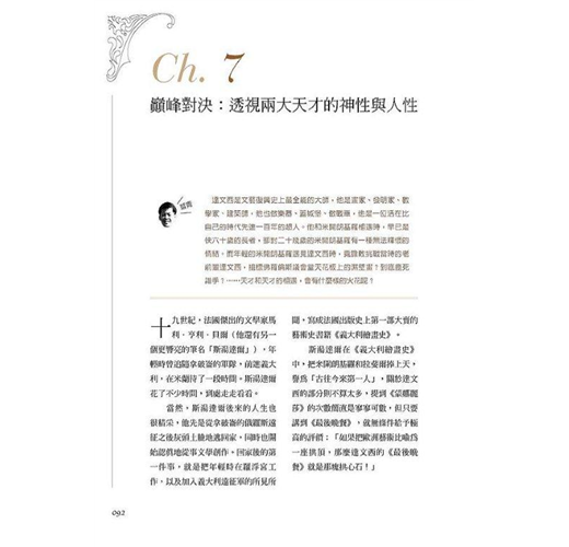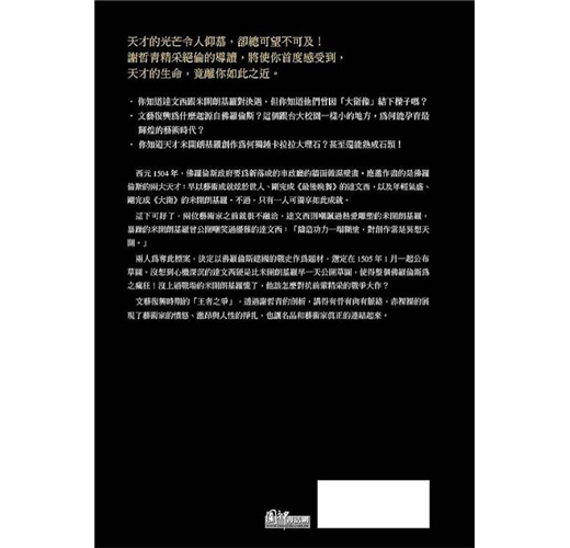 文藝復興時期的「王者之爭」,透過謝哲青的剖析,講得有骨有肉有脈絡,赤裸裸的展現了藝術家的憤怒、激昂與人性的掙扎,也讓名品和藝術家真正的連結起來。