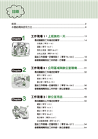 全書章節各細分為三個單元。第一個單元同步呈現「圖像」與「英文」,一邊看我們每天上班都會看見的景象,一邊學習這些單字怎麼說;第二個單元用表格清楚列出工作上必備的單字,並補充該單字的相關字/反義字/類義字等相關資訊,每個單字都附上實用例句,讓讀者能夠立刻應用在各種工作場合;第三個單元以各式各樣的職場文件供讀者實戰演練,文章中的單字都是使用前兩個單元出現過的單字,真正達到「認知→記憶→應用」的學習效果。