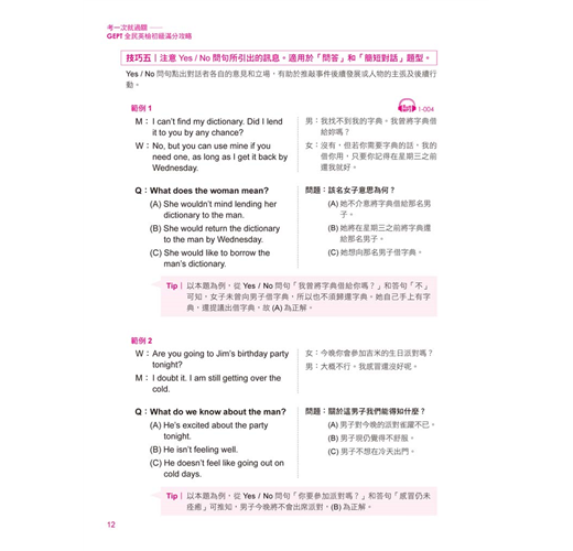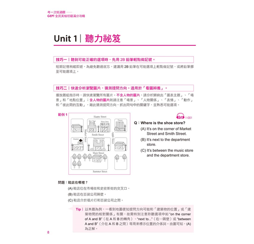本書依據聽力測驗所考的四大題型,特別邀請專業外籍錄音員錄製MP3,讓你在進行本書的練習時就能先適應應考時的英文語速及語調,實際應試時熟能生巧、不再害怕。