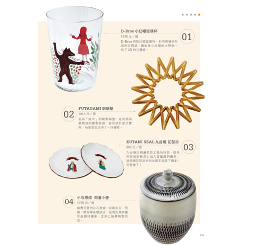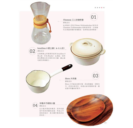 隨著時代演變,日新月異,食器的功能不再是盛裝食物,而是在功能性之外,加入了美觀、時尚以及強烈設計感,生活中,有了摩登的食器相伴,家裡彷彿被施了魔法一般,彰顯獨特品味與個性。本書將教你如何找、怎麼挑好食器,並介紹35家優質食器賣店、400件美好單品與食器設計師,並探討食器與生活的關係。