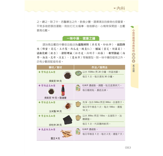 其實,用兵如用藥.不必包山包海多用。本書結合中西醫診療法,並參考諸多歷代名醫專著、專論以及民間驗方,按內科、耳鼻喉科、皮膚科、婦科、兒科等科別,詳述63種症狀或疾病,靈活運用各種常見的中藥或食材,製作便利的一味中藥達到祛病養身作用。