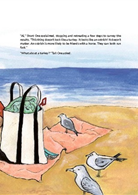 高個子開始唸:「……我有幾次看見大蜥蜴,躺在河床上平平的石頭上。蜥蜴的樣子不好看,可是牠們的顏色,你真的無法想像有多漂亮!那些顏色呀,像是一堆寶石,或是教室裡的彩色玻璃。你一靠近牠們,牠們就爬走。爬動的時候,是一條淡青、蔚藍、碧綠、紫紅的彩帶,漫過河床的小石頭,那些顏色好像就融化在空氣裡,像劃過夜空的彗星的尾巴。