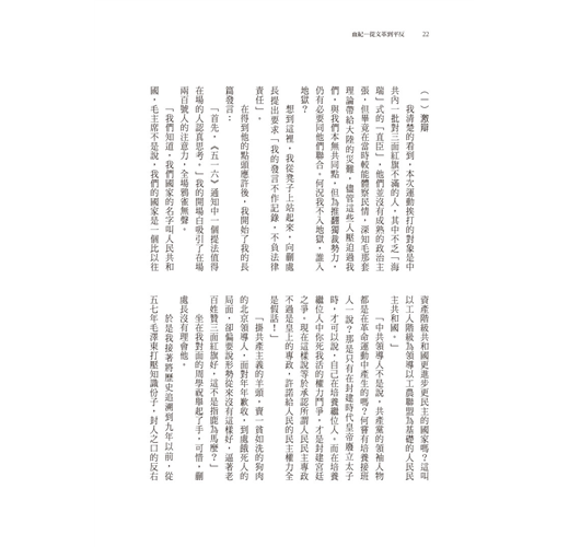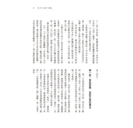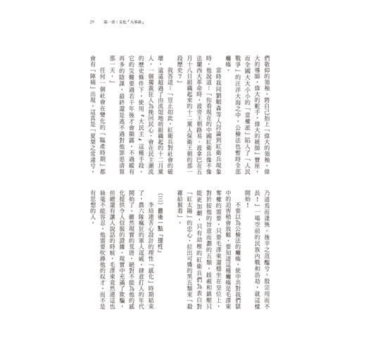 「歷史終於走到了今天,走到了連他當年的親密戰友都無法相信的絕境中,走到了共產黨領導核心都無法維持統一的一九六六年。因此,任何有現實感的人都應當看到,文化大革命,是一場毛澤東排斥黨內持不同意見者發起的宮廷政變!」