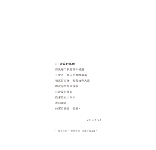 著名作家、醫生、詩人陳克華,2012年年終壓軸代表作,將克華的攝影作品與詩作進行自然又完美的融合與重組,讓您一睹克華的過去與現在。在愛情的旅程中,有時或自在獨行,或掙扎同行,透過本書看見克華的視界。