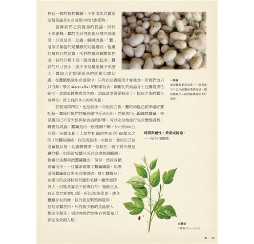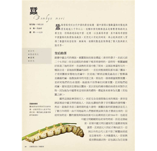 大多數羅馬人,即使熱愛消費絲綢衣物,卻也誤以為它是像棉花一樣的植物纖維,不知道那其實是某種昆蟲其生命週期中的代謝產物。(更多「蠶」內容請見本書)