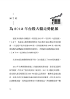 本書針對短時間的台股走勢進行分析,為近兩年特別是2013年台股的投資提供完整的指引,而非廣泛的投資原則介紹。由全球經濟榮枯分析、大盤走勢判斷,到個股的選擇以及投資組合的布局,都有明確的說明,股市老鳥到新鮮人都可以從中獲益。