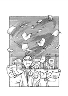 阿福哭喪著臉,抬頭望著傳單滿天紛飛。櫻婆婆拍拍他說: