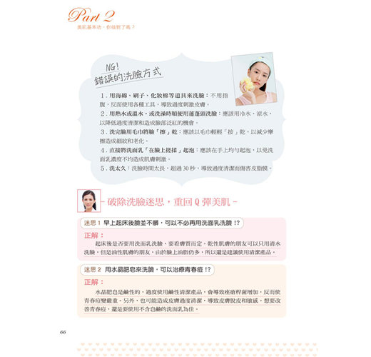 洗臉、卸妝、防曬、保濕……其實不是例行公式,不能隨便抹幾下就交差了事,小心洗錯了、抹錯了,斑點、細紋、脫皮都跑出來見人。透過本書清楚的步驟,完整的圖解,不怕你看不懂,就怕你連試都不想試。
