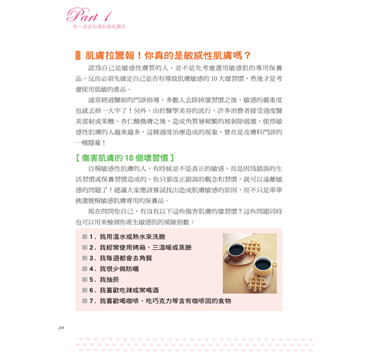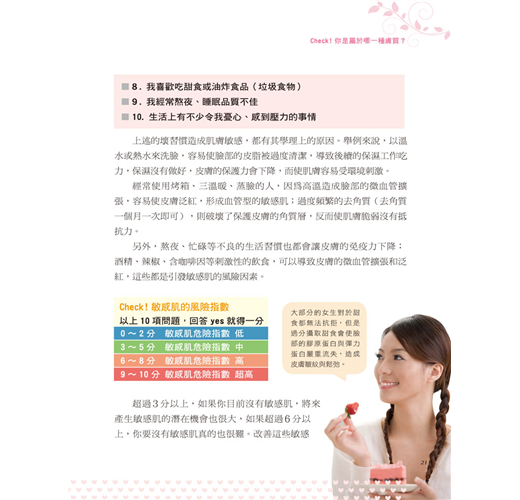 ◎ 搶救問題肌,還你女神般迷人自信風采:熊貓眼讓你氣色總是好差?痘痘讓你出門老是遮遮掩掩?不想當「斑」長,該怎麼辦?本書針對一般女性最在意的肌膚問題,提供修復、預防及日常保健之道,讓問題肌大解放,就算不化妝,也漂亮。