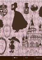 *收錄童話風主題的古典素材,有寶石、公主、獨角獸等特色圖案,也有可搭配的花草圖案、邊框、蕾絲,讓你結合應用,設計出充滿特色的作品!