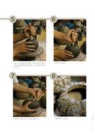 在技術方面,從取土與洗土、練土與揉土、徒手捏塑、陶板成型、手拉坏等基本技法,書中以1000多張製作步驟圖與詳盡解說,讓讀者可以跟著模擬實際操作,對陶藝整體製程能有深入的了解。以珍貴的「天目碗」為例,本書著重拉坏技法的訓練,讓讀者藉由最單純的工法與造形,搭配單一掛含鐵釉漿,就能燒出多彩層次,有如銀河天體般的美感。