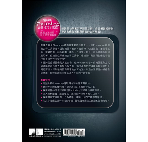 本書將從影像分析的角度出發,從Photoshop基本的範圍選取方式,到進階的遮色片去背與色版去背,循序漸進的教導讀者如何針對不同的影像,採取精確而有效率的去背方法,以及去背影像的編修合成應用,絕對能為您的設計作品注入不同的生命質感。