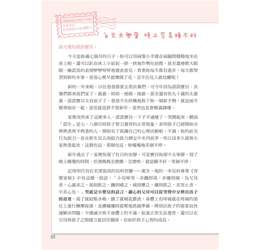 書中程醫師把自己每月在養育女兒過程中遇到的問題及解決方法以12封書信的形式呈現給大家,既教會我們遇到這類問題時的解決方法,又給女兒的成長做了一個很好的紀念。