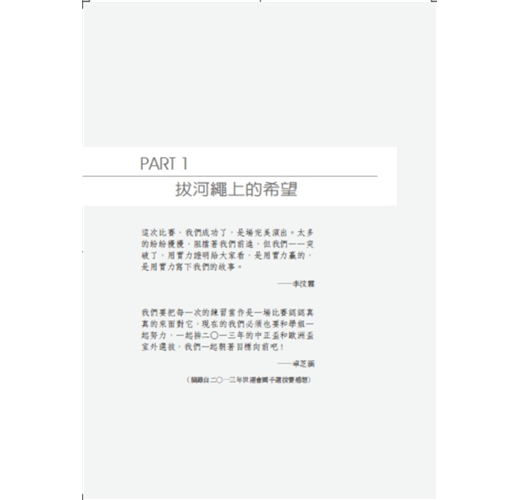 很高興聽到郭教練要出書了,這位鐵血教練真是非常了不起,帶領著這群孩子訓練、出賽、拿金牌,更重要的是他幫這群孩子找到自我的價值。