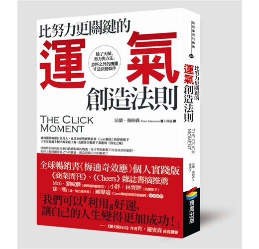雖然書名中既有「運氣」,又有「機運」,但裡頭講的事情一點也不是什麼朦朧的、「看得到吃不到」的東西。關於成功,法蘭.強納森(Frans Johansson)的《比努力更關鍵的運氣創造法則:除了天賦、努力與方法,意料之外的機運才是決勝條件》有一個原創又易懂,且超務實的好點子!