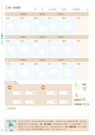 當你記錄完第1個星期的日記,可立刻針對你的飲食、運動等內容做小小分析,將這些分析結果當作之後數個星期的改進。除了每天記錄減重日記,更特別針對個人設計「我的體重表」,讓你更清楚每天體重和生理的變化。