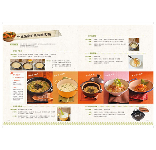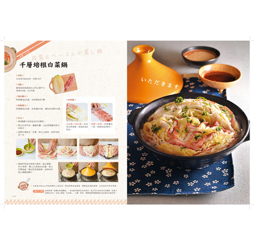 此外,日本人很愛吃鍋物,會利用味噌、咖哩、豆漿、泡菜等調味及材料研發出很多創意美味,包含:「千層培根白菜鍋」、「肉團子味噌豆乳鍋」、「椰奶咖哩雞肉鍋」、「泡菜味噌豬肉鍋」、「雞肉丸子鍋」…等等,均收錄在本書中,讓讀者深刻體驗庶民家庭的鍋料理。
