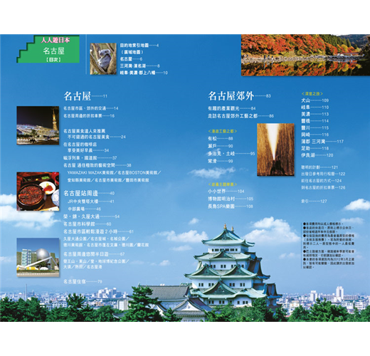 名古屋周邊滿是日本歷史著名的地方和觀光景點。包含岐阜、美濃、犬山、蒲郡、三河灣等;以及陶瓷器著名的瀨戶、有松、多治見……。從傳統到現在,從山珍到海味,都集約在本書裡。