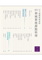 ●變化多端的食材:書中會用以往不曾出現在甜點中的白菜、茄子、蓮藕、胡蘿蔔、白蘿蔔、蠶豆等蔬菜,來製作美味而且熱量低的和風甜點;另外,還特別設計連壽司、西式料理也都能搭配的和風甜點。