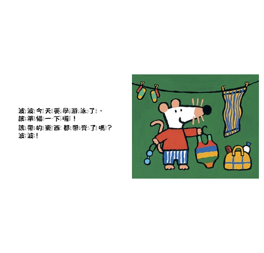 在這一本體驗書中,波波跟著朋友一起去游泳,游泳前要準備甚麼東西呢?