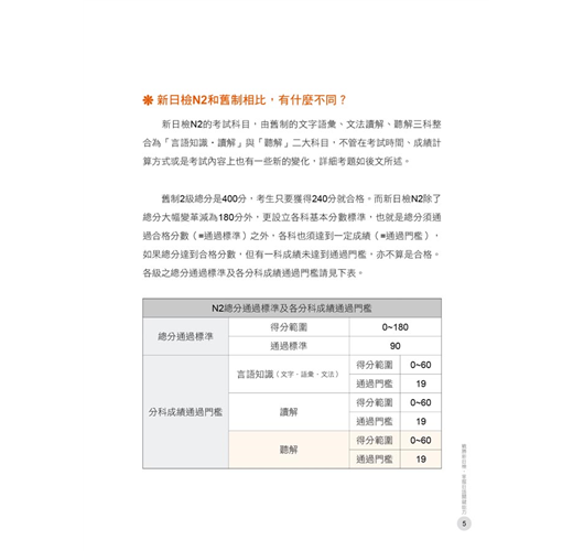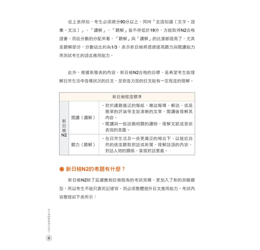 與舊日檢相比,新日檢的「聽解」科目提高比重,佔了全部分數的1/3。